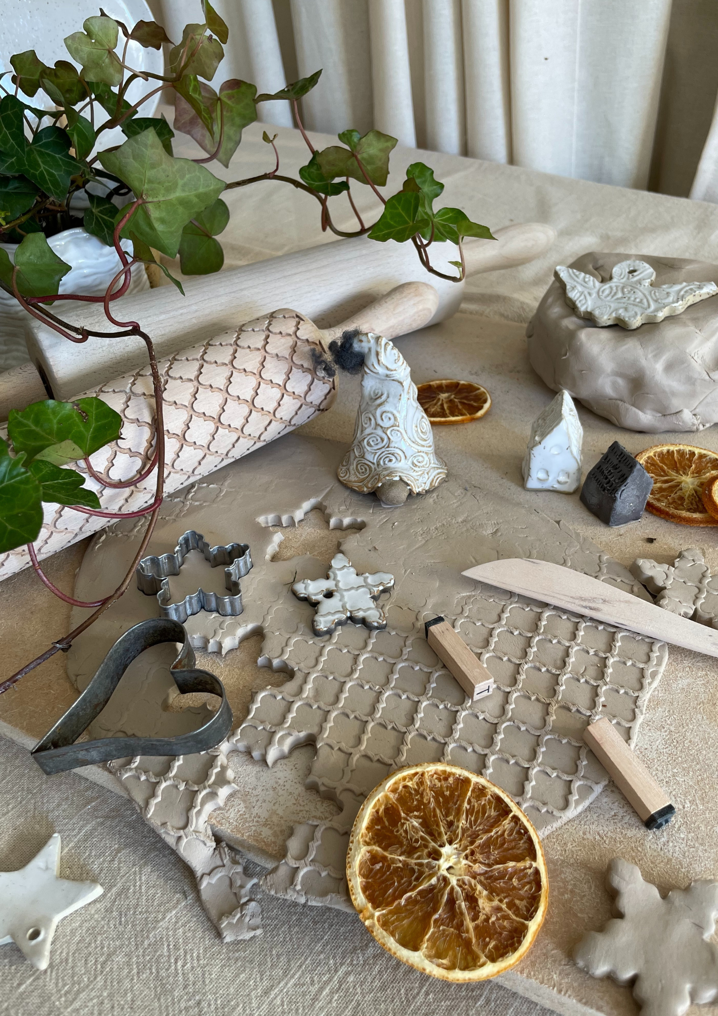 Under denna 3-timmars workshop skapar vi personliga juldekorationer i lera med hjälp av handbyggnadstekniker som: kavling, tumning & ringling
